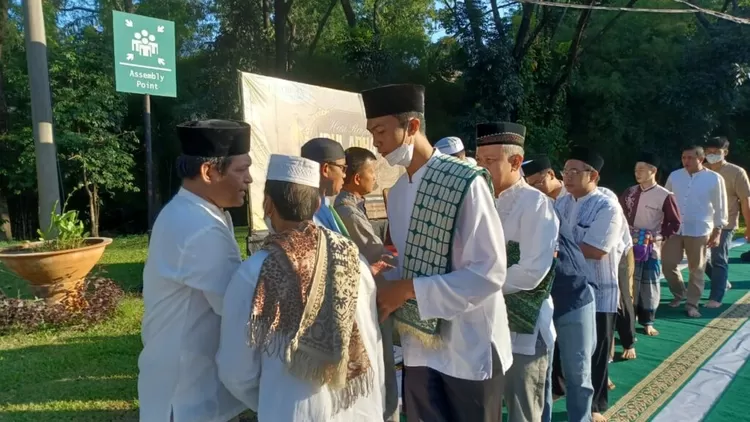 RBG.ID - Jajaran direksi Sentul International Circuit (SIC) Bogor dan Lorin Sentul Hotel bersama warga melaksanakan salat Idul Adha 1443 H di Area Pos 2 Parkiran Depan Gedung Lorin Sentul Hotel, Minggu (10/7).