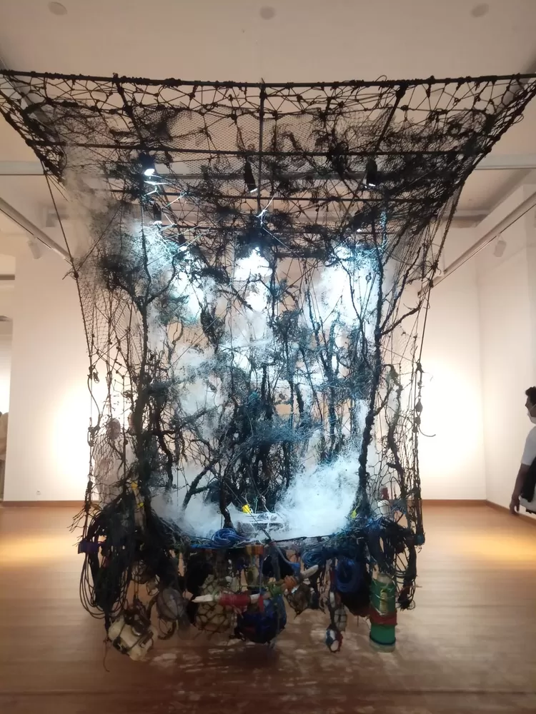 Mulai dari pajangan dari jala nelayan dengan banyak benda yang menjerat, karya seni perahu mungil dengan ikan-ikan yang terikat ke atas, lukisan 2D dan 3D berbentuk animasi hewan, hingga instalasi seni yang memperkenalkan batik dengan hasil tambang Indonesia.