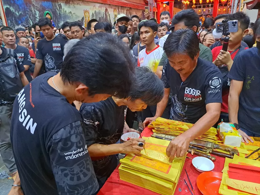 Kemeriahan rangkaian perayaan Cap Go Meh semakin meriah. Ribuan orang memadati Vihara Dhanagun pada Sabtu (4/2/2023) malam.