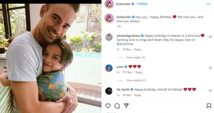 RBG.id - Hari ini hari ulang tahun Ashraf Sinclair, mendiang suami Bunga Citra Lestari atau BCL. Bertepatan dengan hari spesial tersebut, BCL lantas mengunggah foto Ashraf bersama sang buah hati Noah Aidan Sinclair.