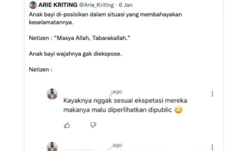 "Anak bayi diposisikan dalam situasi yang membahayakan keselamatannya," cuitnya.